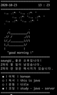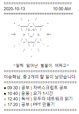 - 현재 시스템의 시간 정보에 맞게 아스키 아트를 출력합니다.
