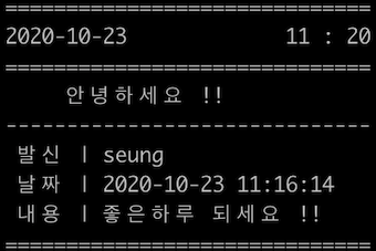 - 커맨드 입력을 통해 메시지의 전송 받은시간,내용 등을 출력합니다.