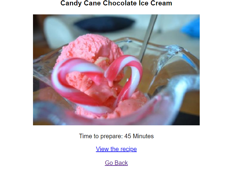 Each recipes provides an image of the recipe, title, and the link. The link takes the user to recipe card page where user can see the picture, title, preparation time, and the link to the original recipe.