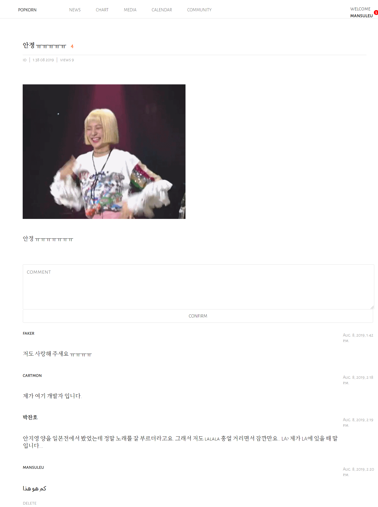popKorn is a community made by K for K-POP fans all over the world. You can get,share all about your K-idol without misunderstating here in POPKORN!