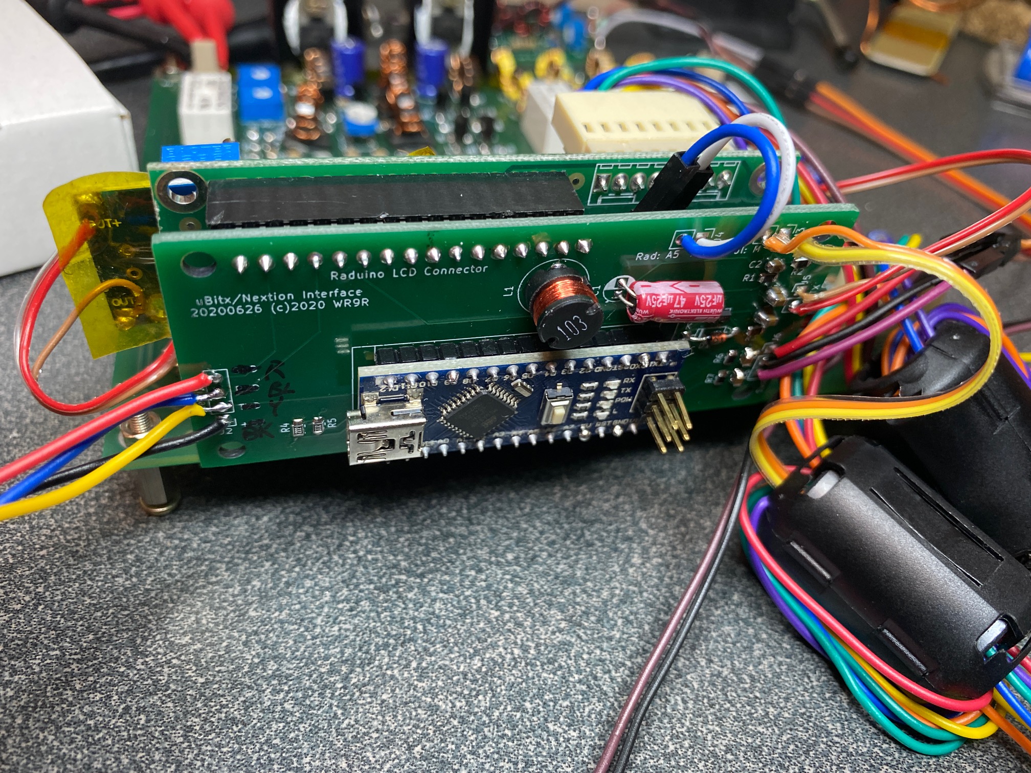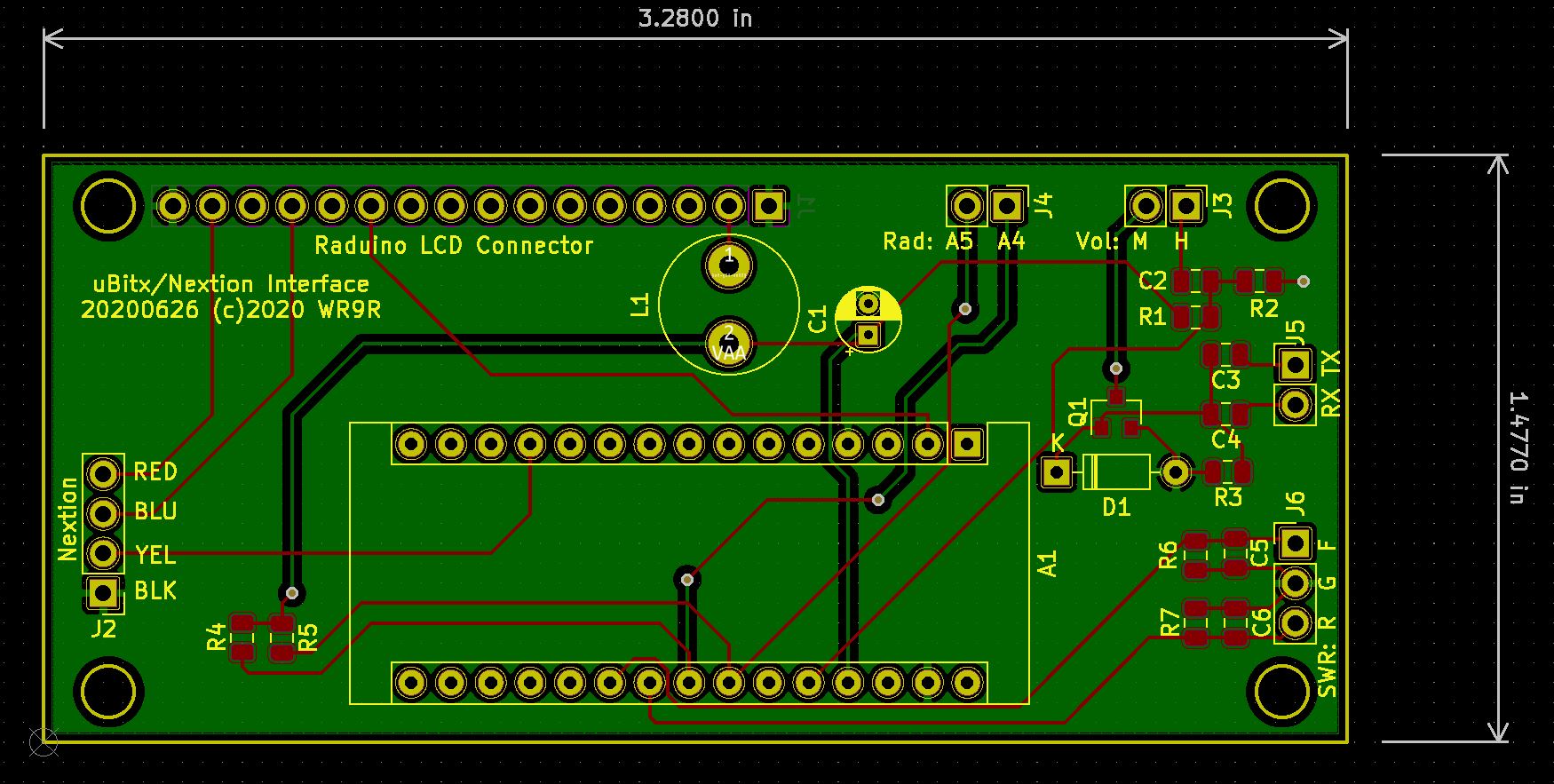 This PCBA cleans up the wiring for V3-V5 uBitx Radio Kits that use the Nextion Display