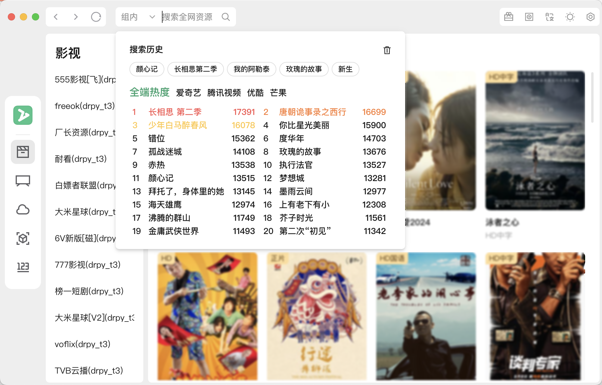 - 软件提供播放框架,具体播放源需用户自行配置。