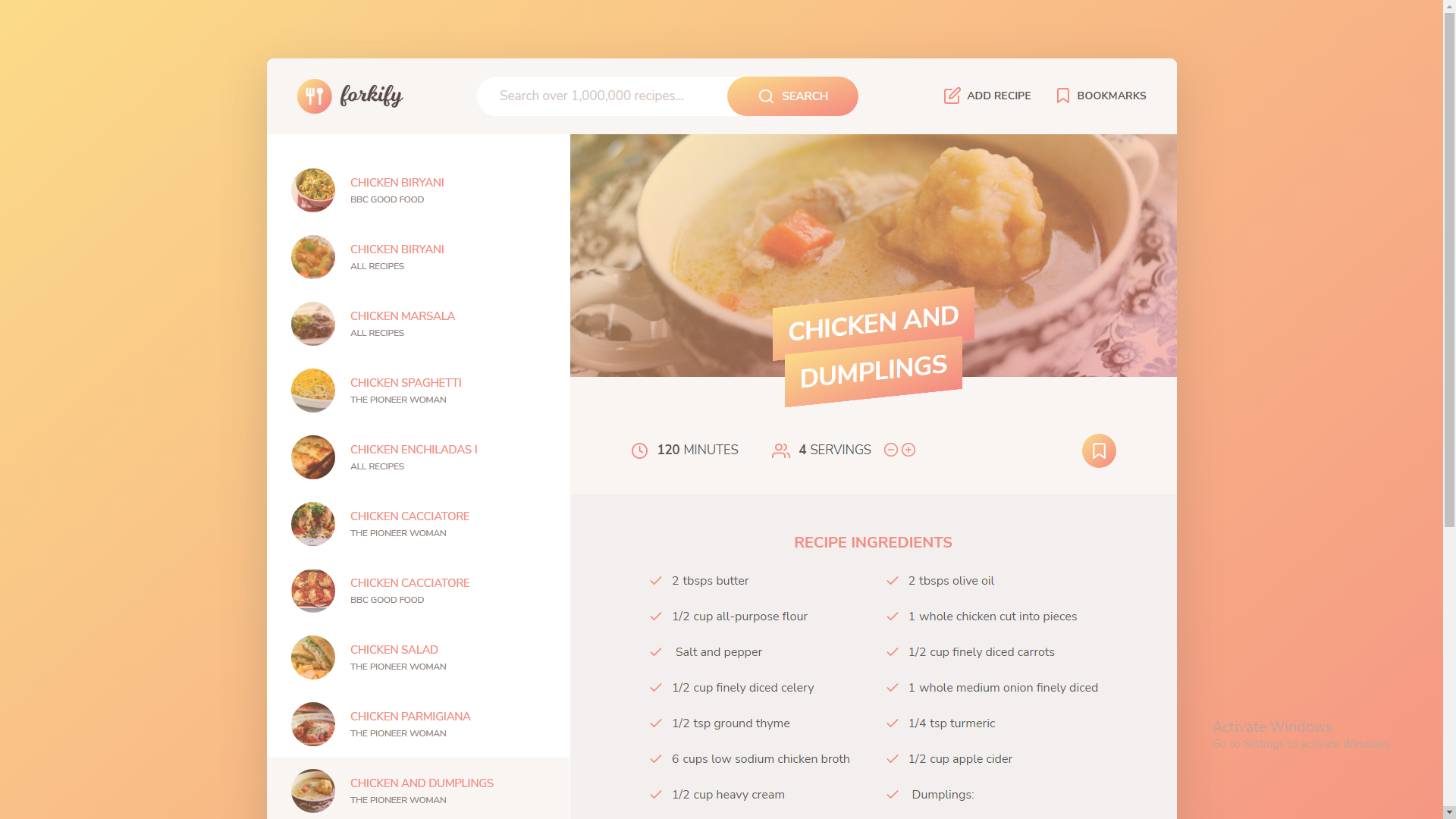 The Forkify Recipe App allows users to search for recipes using the Forkify API. Users can search and view recipes along with their cooking time and adjust the servings to get updated ingredient quantities. Users can bookmark their favourite recipes which are stored in local storage, and add their own recipes which are automatically placed in the bookmarked recipes window.