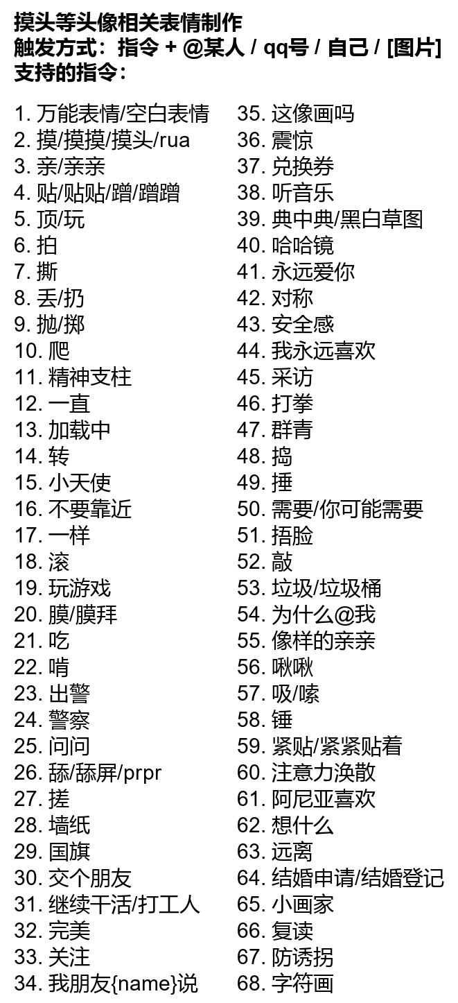 发送 启用表情/禁用表情 [表情名],如:禁用表情 摸、启用表情 petpet 贴 爬