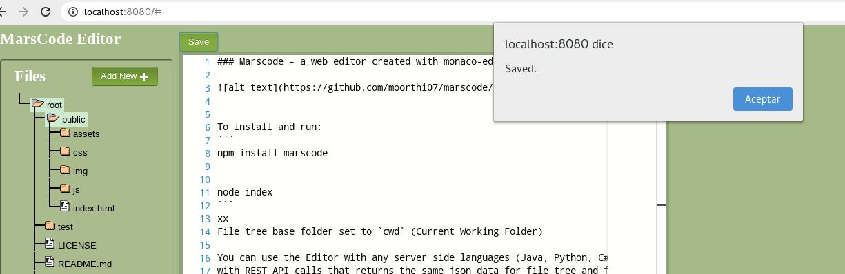 marscode is a web editor created with monaco-editor, jquery file tree and nodejs file tree to read, write, edit, delete (CRUD) files.
