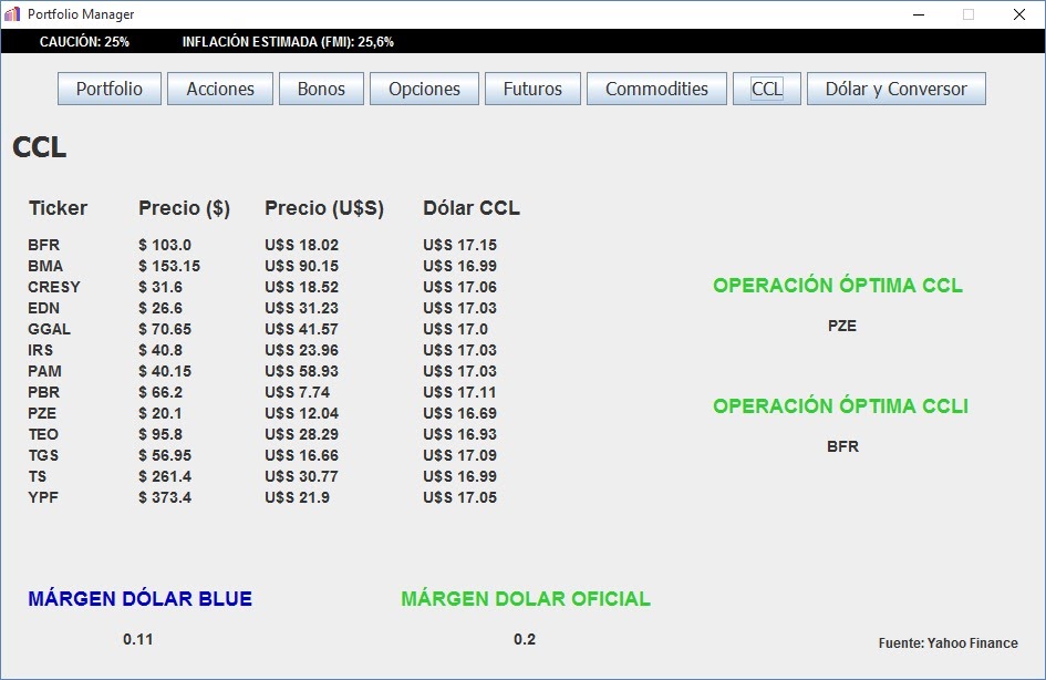 This tool can be used (especially when there's an economic crisis in Argentina) to buy stocks in Argentine pesos and sell them in US dollars getting a cheaper dollar than the market if you use the right stock for each operation. The software automatically calculates the best stock to use for each operation scrapping real-time stock market data (that technique in Argentina is called “Dólar contado con liquidación”).