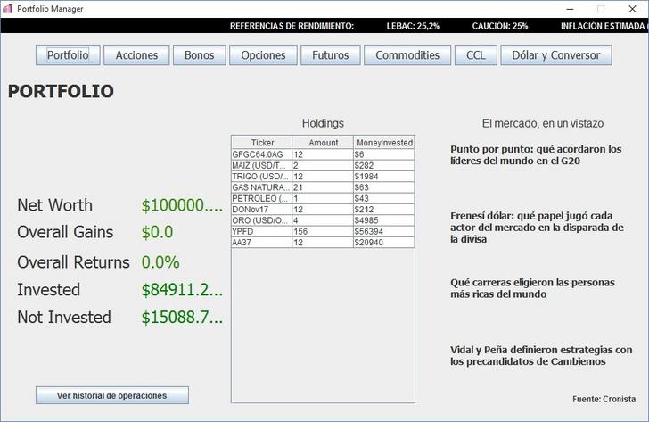 Investment Portfolio Manager software for asset allocation and detection of business opportunities in the financial market.
