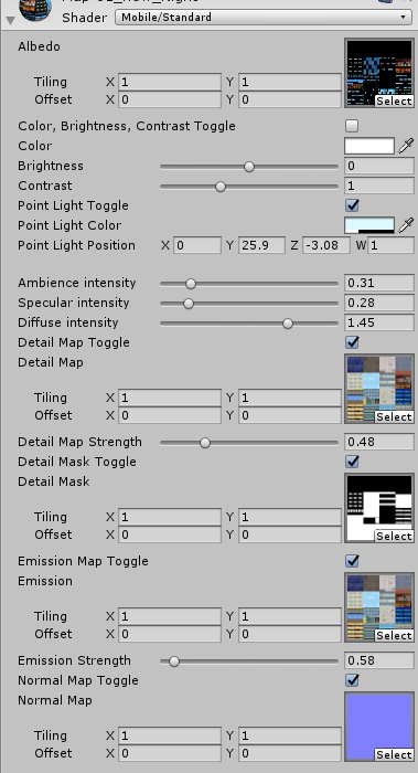 - No other lighting (except lightmaps) are passed in. If you need more lighting options, consider using a different shader.