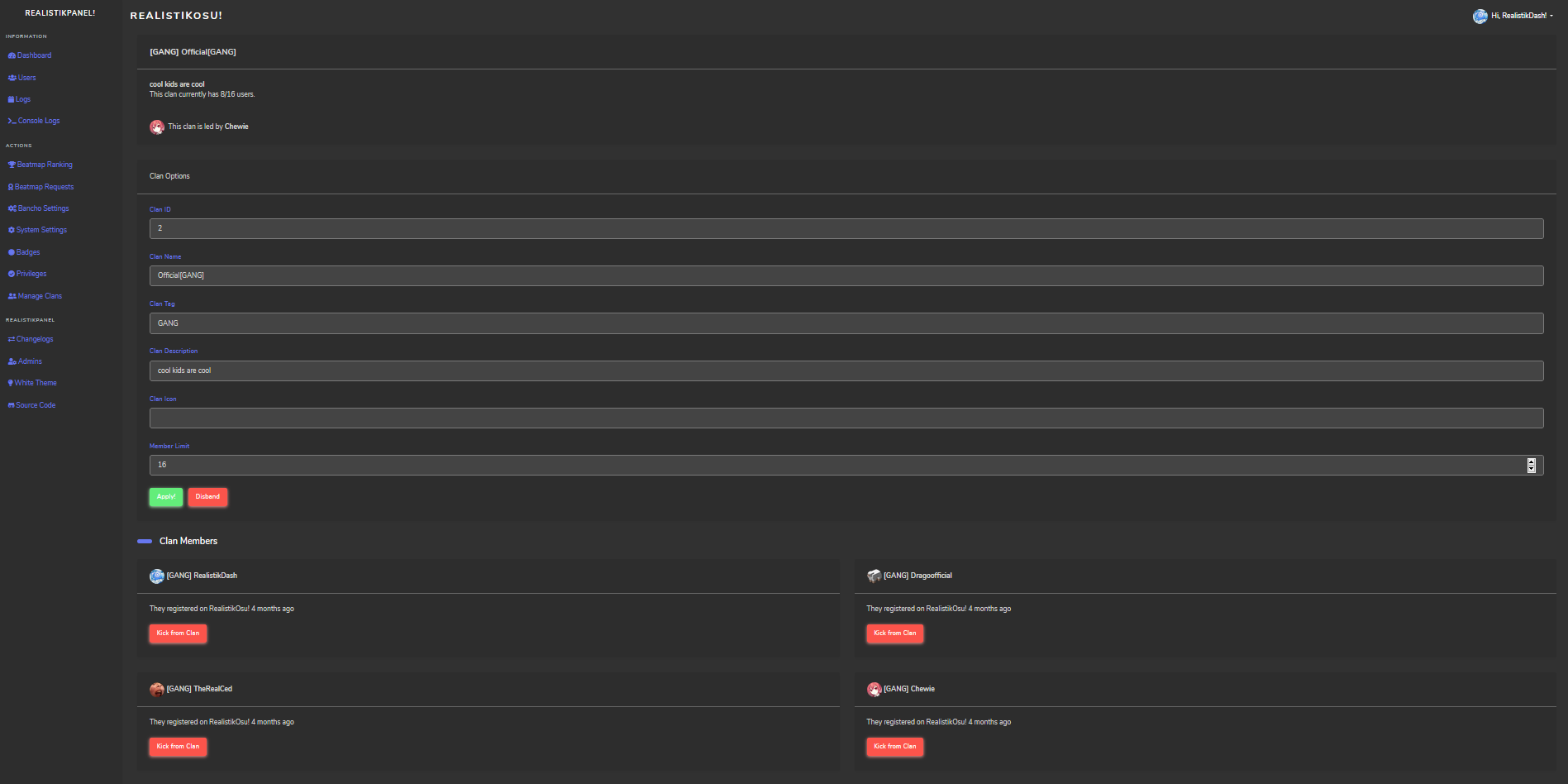I'm trying to re-code every feature that the RealistikPanel currently has into javascript.