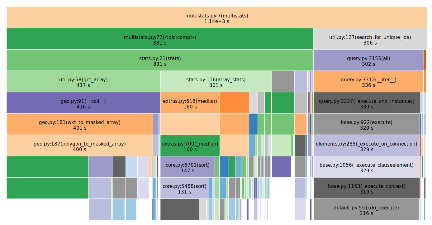 The profiling shows that (appropriately) most of the compute time is spent pulling data out of NetCDF files and calculating statistics.