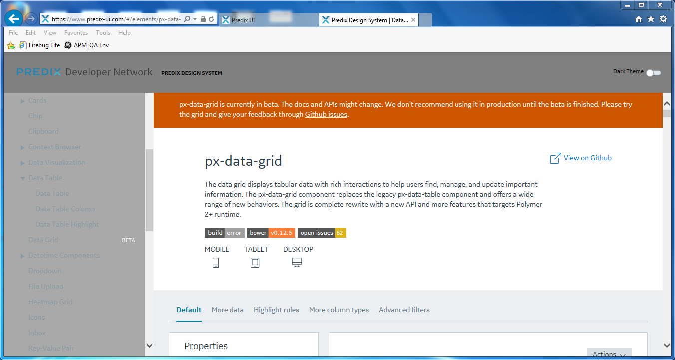 Haven't tested all the pages exhaustively, but data grid seems to be the only one doing it out of the 4 pages I tried.