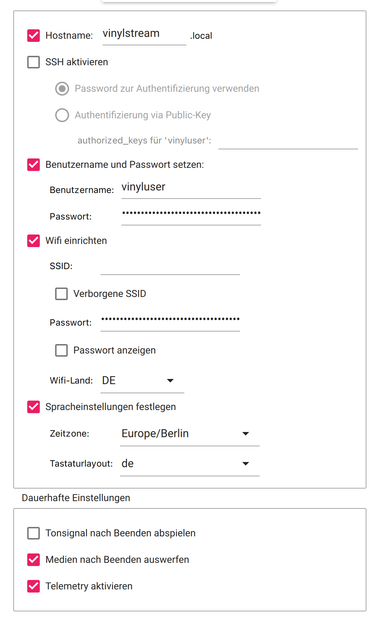 Another option as ADC instead of a USB Audio Device that should technically provide the same function but has not been tested here are HiFiBerry's ANALOG INPUT products like "HiFiBerry DAC+ ADC PRO", "HiFiBerry DAC2 ADC PRO", or "HiFiBerry DAC+ ADC" as input, (which as bonus using HiFiBerry makes the whole build an all-in-one package that could be aesthetically pleasing and almost have the clean look of a commercial appliance):