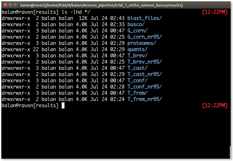 | 5. | [species_name] | This directory has the trinity output files and the renamed initial de novo transcriptome assembly. In the tutorial, the directories are named G_corn, T_brev, T_cast, T_conf, T_frem. |