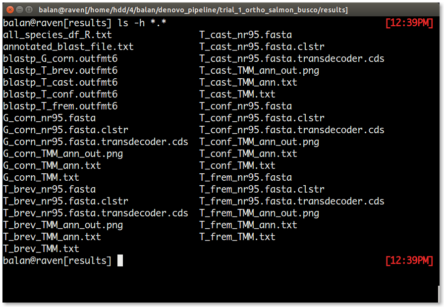 | 6. | [species_name]_nr95 | This directory is created after indexing the processed transcriptome of each species by salmon. In the tutorial, the directories are named G_corn_nr95, T_brev_nr95, T_cast_nr95, T_conf_nr95, T_frem_nr95. |