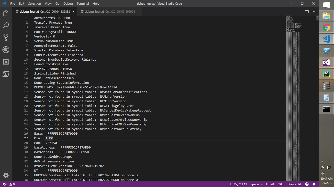 debug_log.txt contains too many lines mentioning something like this but with different addresses 'UNKNOWN System Call Enter NT FFFFF802702D11D4 on core 3. ' What is this address pointing?