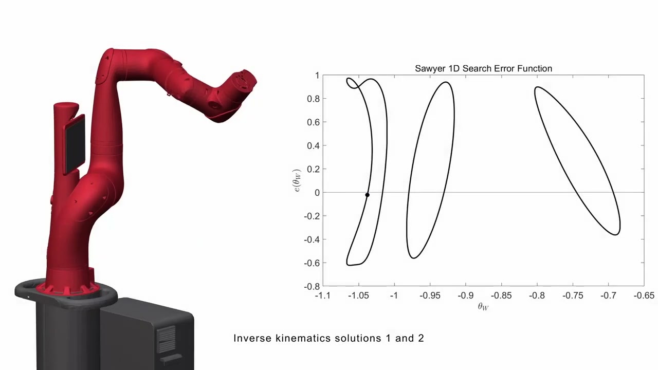 If we take each q and use forward kinematics to find the resultant end effector pose and SEW angle, we see all IK solutions are correct. All errors are zero to a tolerance of less than 1.0e-15.