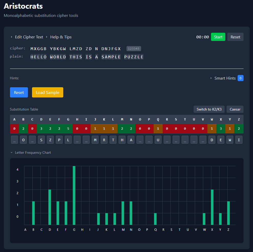 A modern web application providing interactive tools for solving cryptograms. Built with Astro, React, and TailwindCSS.