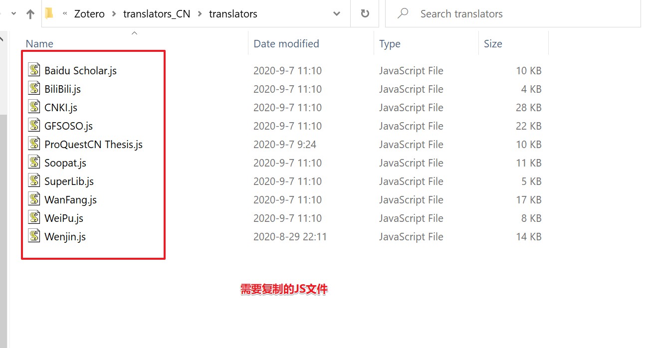 2 解压下载的压缩包,找到translators目录,将目录中的文件复制到 Zotero 的 translators 目录