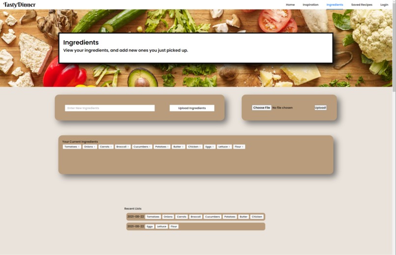 Our team is full of food lovers and what’s a better way to show this passion than to design and develop a website related to it! We were inspired by the Hack The 6ix sponsor BMO, who proposed the challenge of answering “What to eat for dinner?”. We realized that this is probably the most asked question during the pandemic, since we can’t go out normally, and search our fridges every 15 minutes at home for something to eat. Hence, we wondered how people could prepare themselves a meal with just 5 ingredients found in the fridge? Don’t worry, TastyDinner is here for you!