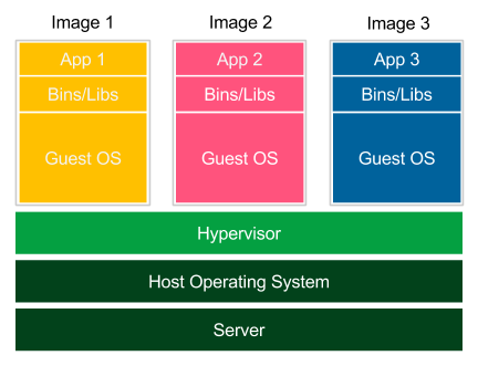 - Large image size: Each application is delivered with a full operating system, so the deployment on a server implies sending and storing a large amount of data.