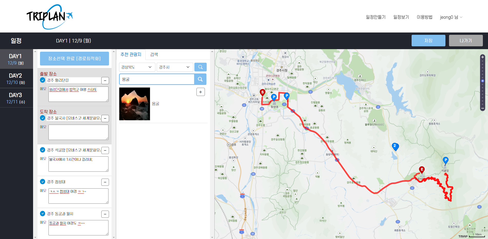 - TMAP API를 사용하여 장소 검색 및 경유지 최적화 기능 구현